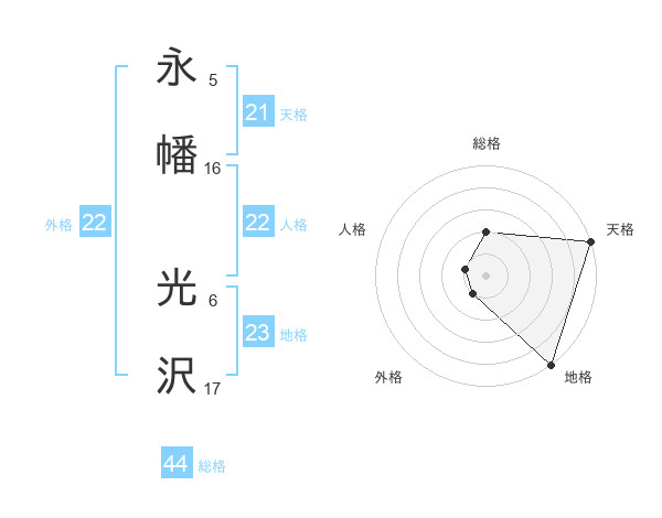 永幡 光沢さんの総格は44画の2点!