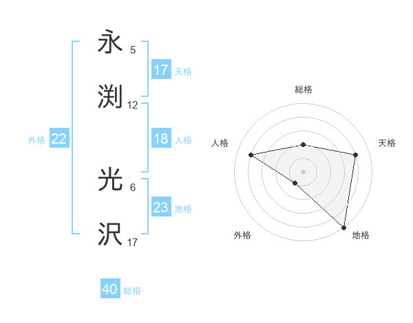 永渕 光沢さんの天格は17画の4点!