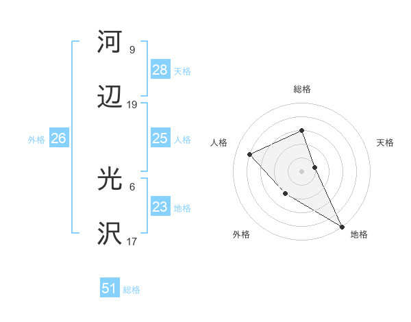 河辺 光沢さんを姓名の画数から五運を鑑定