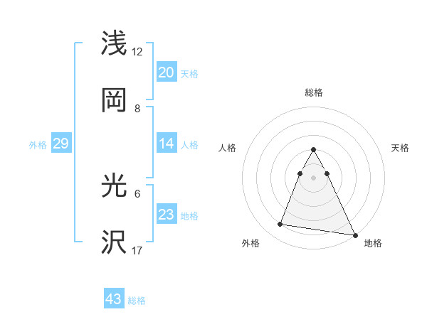 浅岡 光沢さんを姓名の画数から五運を鑑定