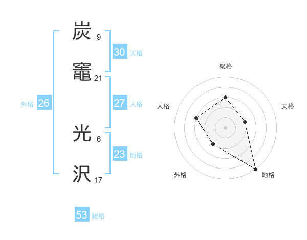 炭竈 光沢さんを姓名の画数から五運を鑑定