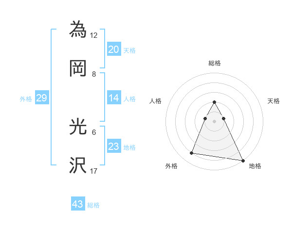 為岡 光沢さんの総格は43画の2点!