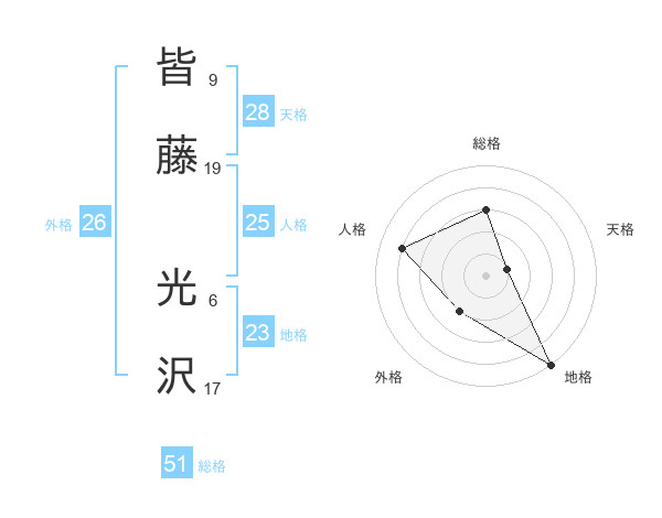 皆藤 光沢さんを姓名の画数から五運を鑑定