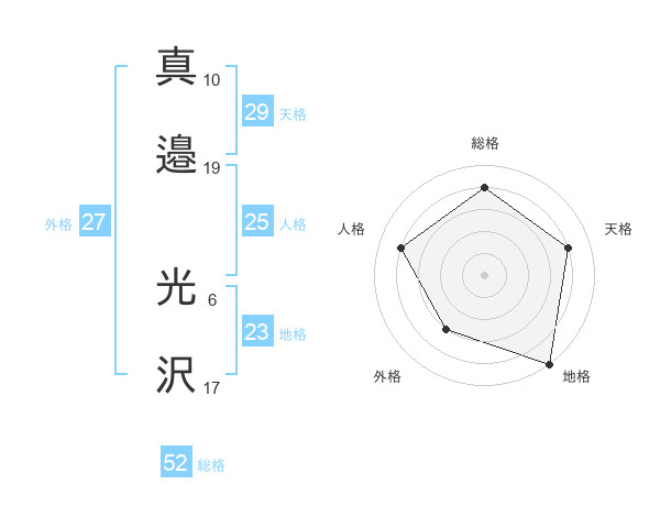 真邉 光沢さんの総格は52画の4点!
