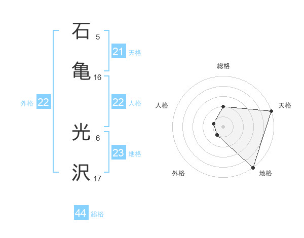 石亀 光沢さんを姓名の画数から五運を鑑定