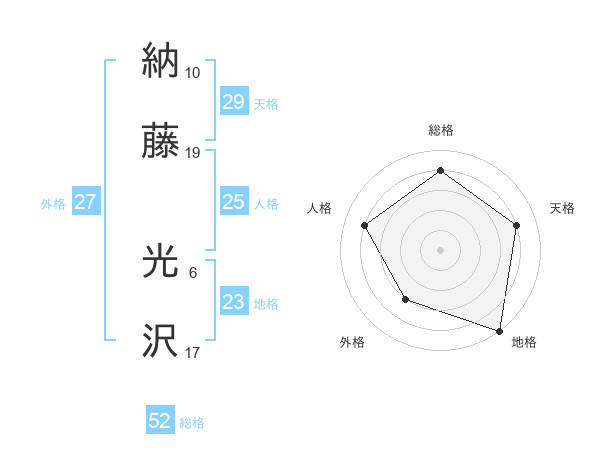 納藤 光沢さんの総格は52画の4点!
