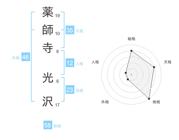 薬師寺 光沢さんの総格は58画の4点!