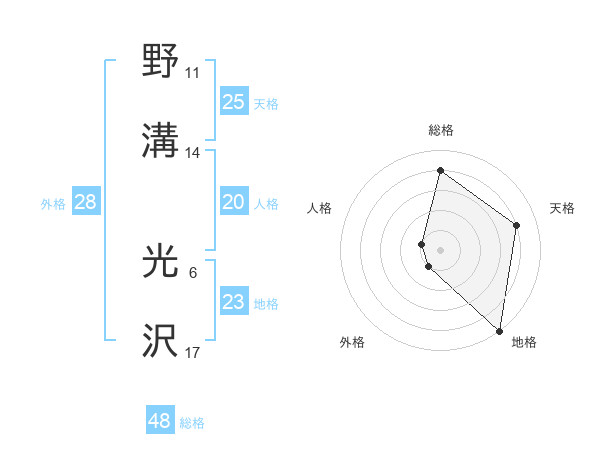野溝 光沢さんの総格は48画の4点!
