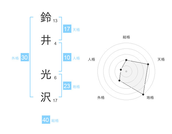 鈴井 光沢さんの総格は40画の2点!