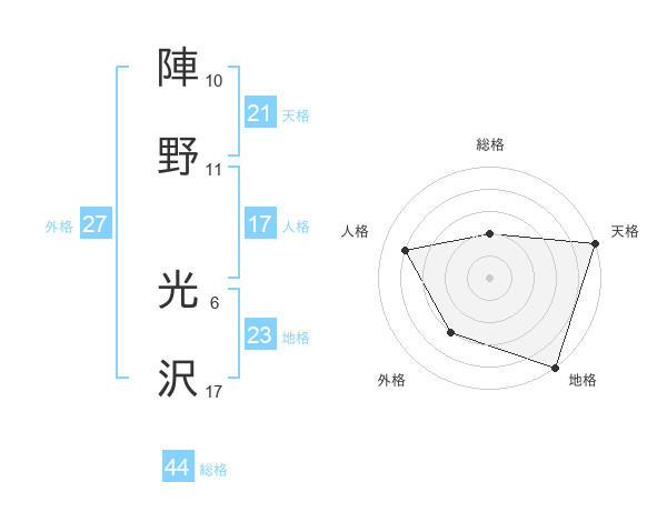 陣野 光沢さんを姓名の画数から五運を鑑定