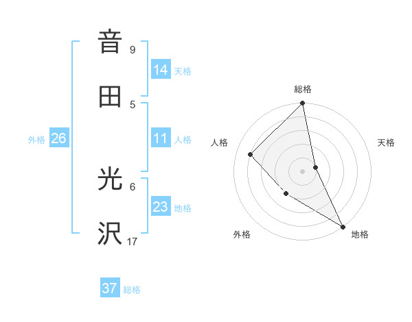 音田 光沢さんの総格は37画の5点!