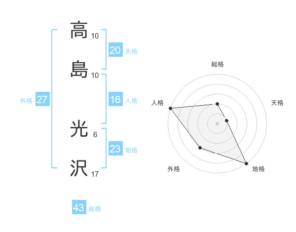 高島 光沢さんの総格は43画の2点!