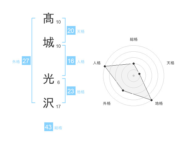 髙城 光沢さんの総格は43画の2点!