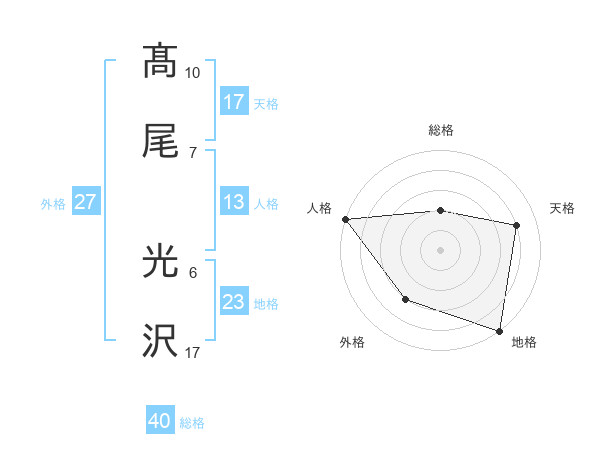 髙尾 光沢さんの総格は40画の2点!