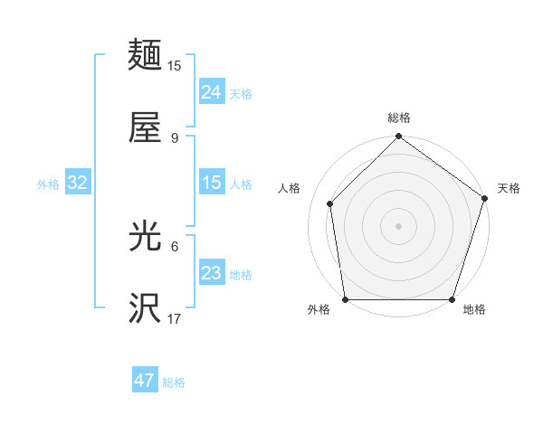 麺屋 光沢さんの総格は47画の5点!