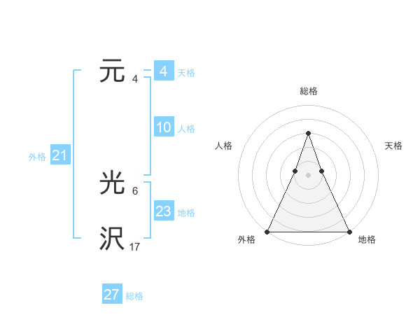 元 光沢さんの総格は27画の3点!