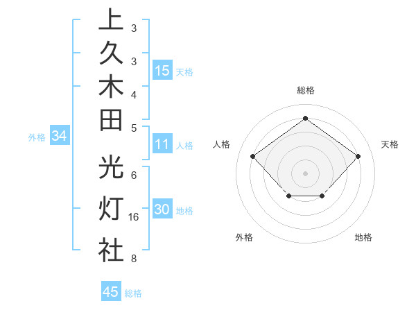 上久木田 光灯社さんを姓名の画数から五運を鑑定