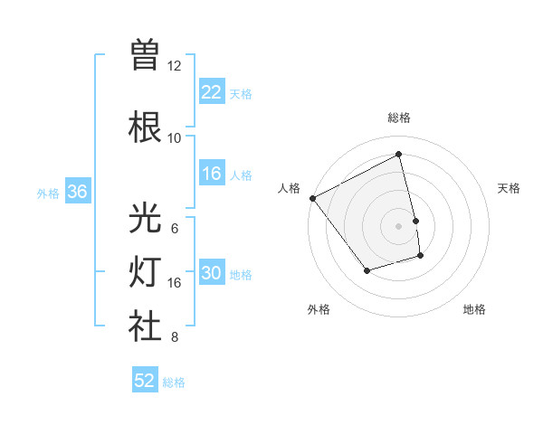 曽根 光灯社さんの総格は52画の4点!