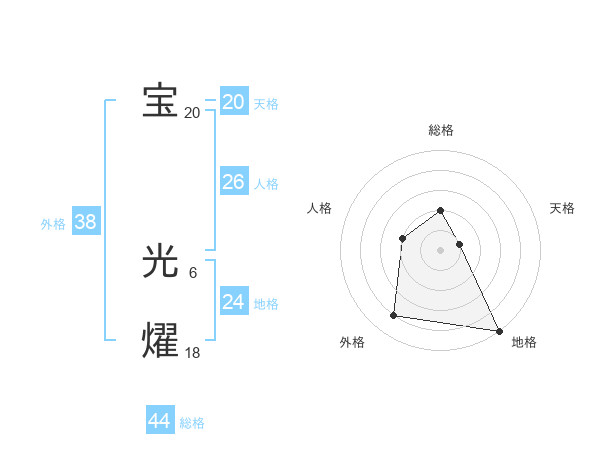 宝 光燿さんの総格は44画の2点!
