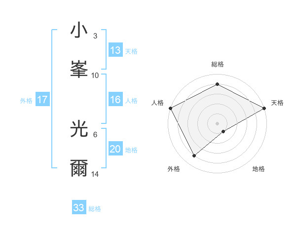 小峯 光爾さんを姓名の画数から五運を鑑定