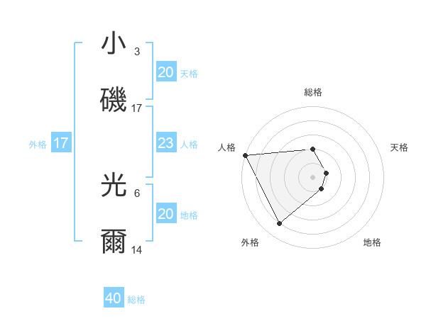 小磯 光爾さんの天格は20画の1点!