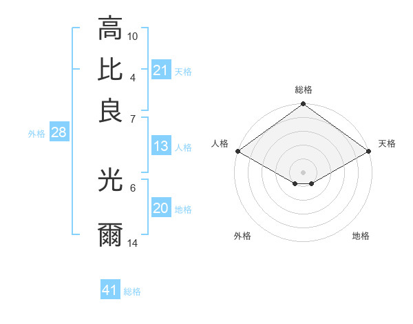 高比良 光爾さんの天格は21画の5点!