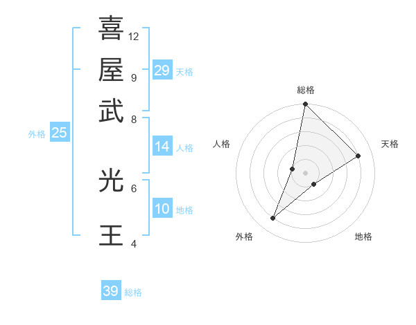 喜屋武 光王さんを姓名の画数から五運を鑑定