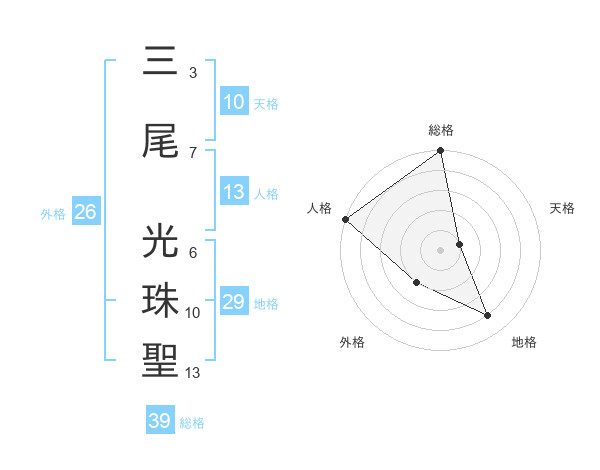 三尾 光珠聖さんの総格は39画の5点!