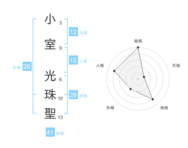 小室 光珠聖さんの総格は41画の5点!