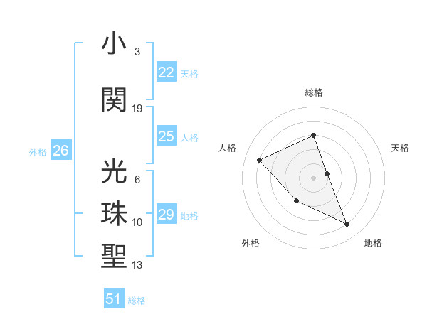小関 光珠聖さんを姓名の画数から五運を鑑定