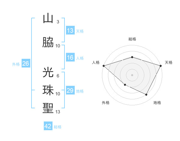 山脇 光珠聖さんを姓名の画数から五運を鑑定