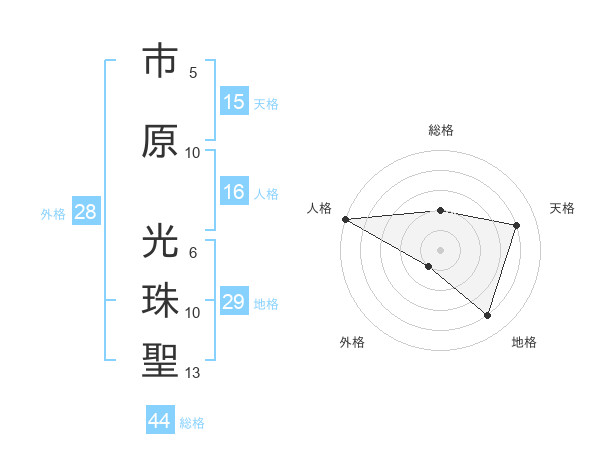 市原 光珠聖さんの総格は44画の2点!
