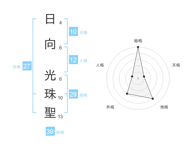 日向 光珠聖さんを姓名の画数から五運を鑑定