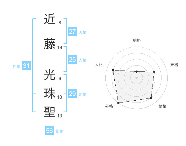 近藤 光珠聖さんを姓名の画数から五運を鑑定