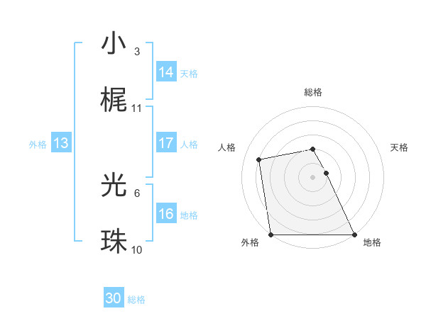 小梶 光珠さんの外格は13画の5点!