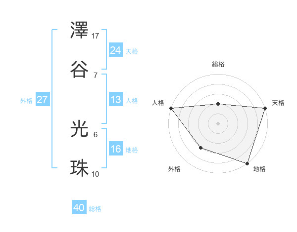澤谷 光珠さんの総格は40画の2点!