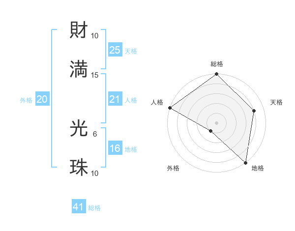 財満 光珠さんの天格は25画の4点!