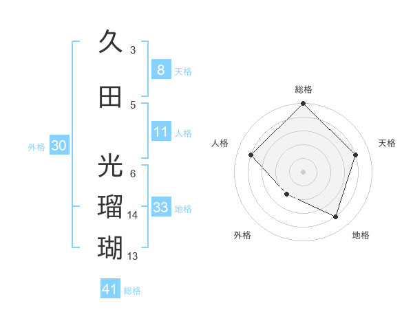久田 光瑠瑚さんの総格は41画の5点!