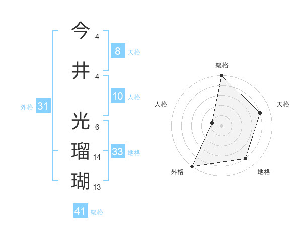 今井 光瑠瑚さんを姓名の画数から五運を鑑定