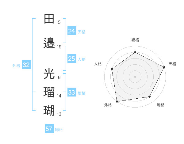 田邉 光瑠瑚さんの総格は57画の4点!
