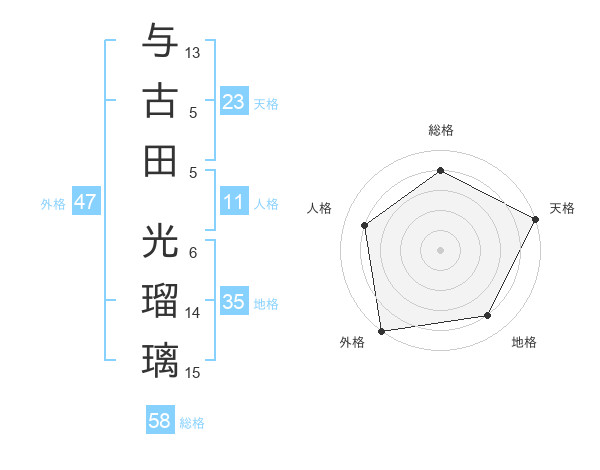 与古田 光瑠璃さんの天格は23画の5点!