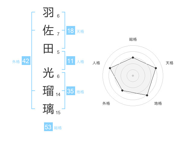 羽佐田 光瑠璃さんの総格は53画の3点!