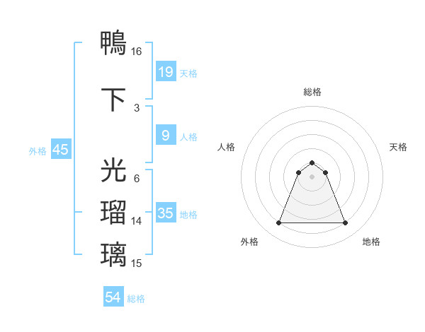 鴨下 光瑠璃さんの外格は45画の4点!