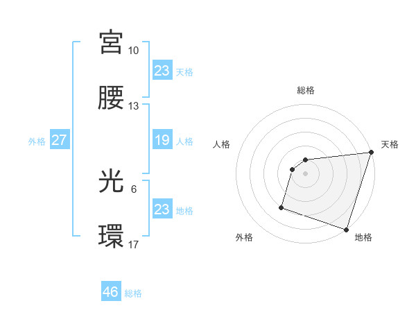 宮腰 光環さんを姓名の画数から五運を鑑定