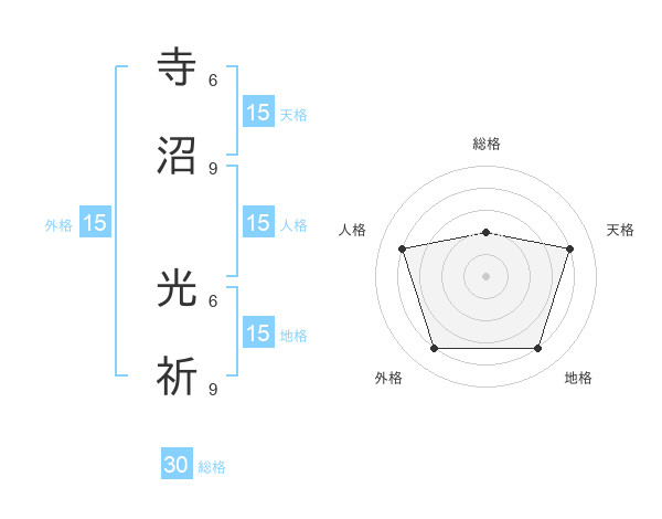 寺沼 光祈さんの天格は15画の4点!
