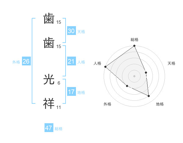 歯歯 光祥さんの総格は47画の5点!