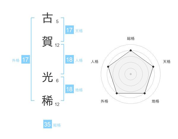 古賀 光稀さんを姓名の画数から五運を鑑定