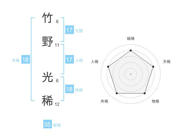 竹野 光稀さんを姓名の画数から五運を鑑定