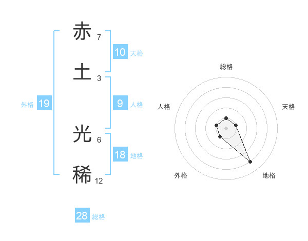 赤土 光稀さんを姓名の画数から五運を鑑定