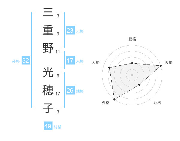 三重野 光穂子さんを姓名の画数から五運を鑑定
